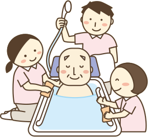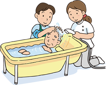 訪問入浴介護とは、要介護度の高い方や身体の障害などで、入浴が困難になった方が、自宅で専門業者の介助を受けて安全に入浴できるサービスです。