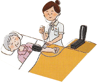 看護師が血圧、体温、脈拍などを測定し、入浴可能か判断