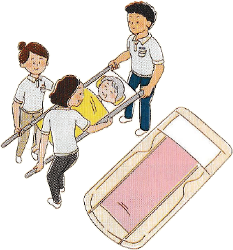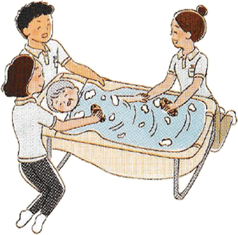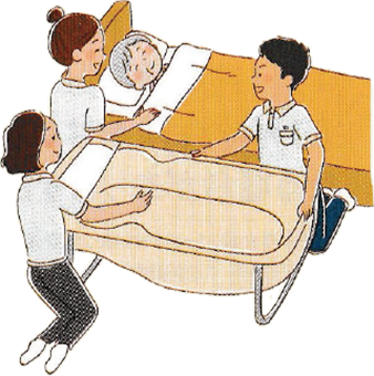 ハンモック状の担架ネッ卜を使い寝た状態で入浴する。 -