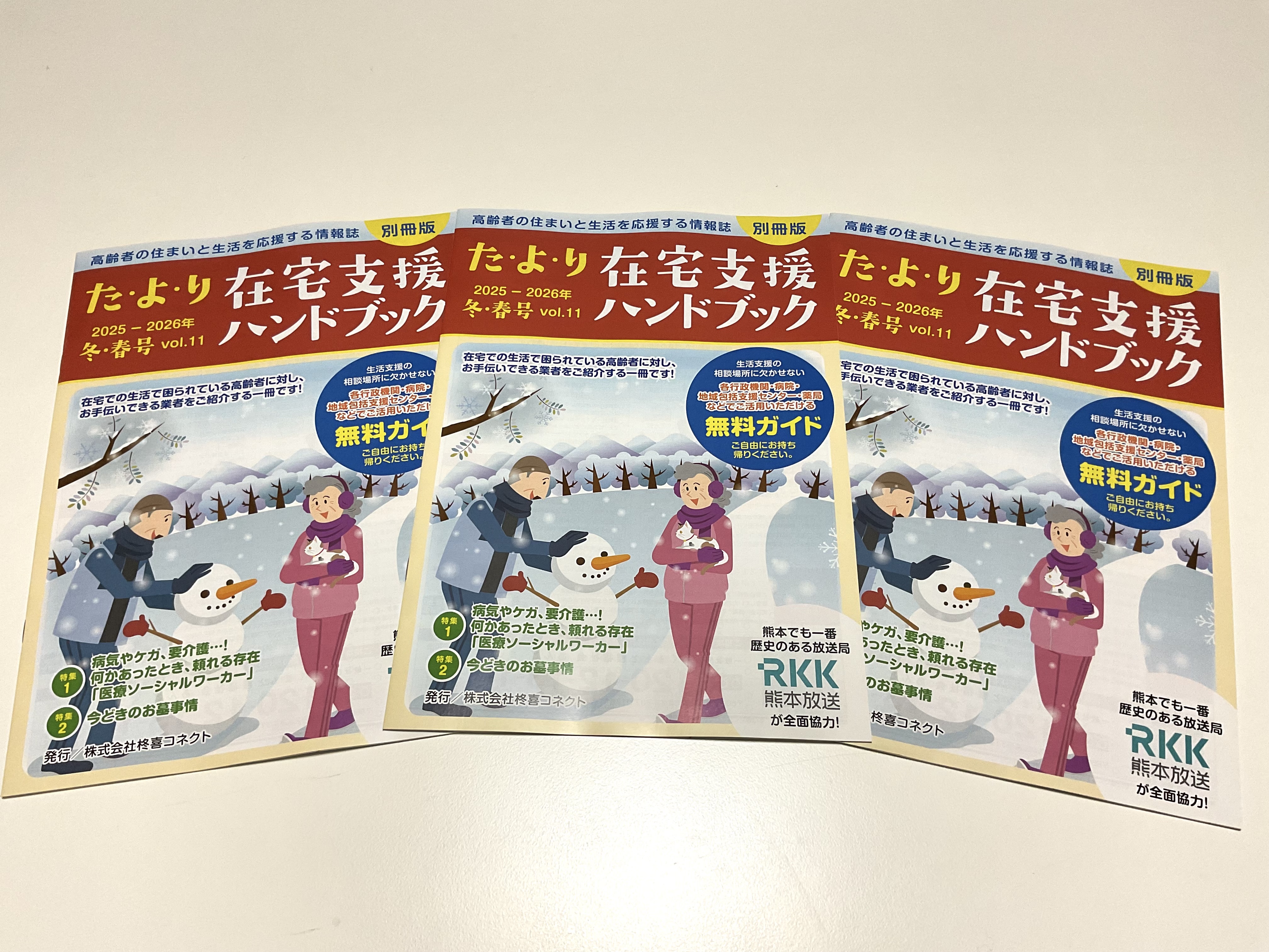 高齢者の住まいと生活を応援する情報誌『た・よ・り在宅支援ハンドブック冬・春号vol.11 』が先日発行致しました!在宅支援ハンドブックは在宅で過ごされている高齢者の皆様やそのご家族の方々が知りたい医療・介護・生活支援の情報を一冊にまとめ、カテゴリ分けにし、幅広くご紹介しております。