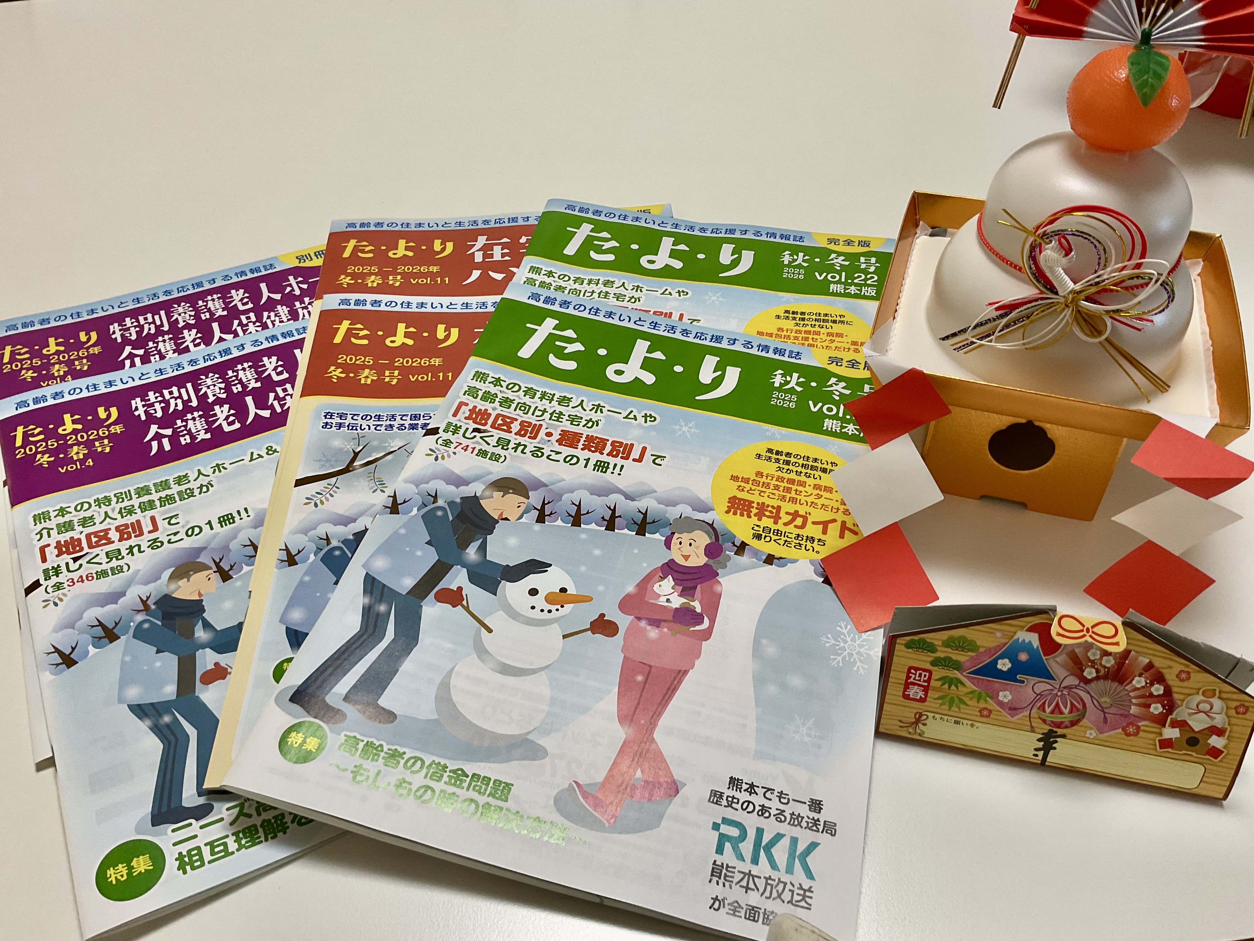 新年明けましておめでとうございます。旧年中は格別のご厚情を賜り、厚く御礼申し上げます。本年も『高齢者の住まいと生活を応援する情報誌 た・よ・り』を通して、より良い情報をご提供できるよう一層精進してまいりますので、何卒よろしくお願い申し上げます。